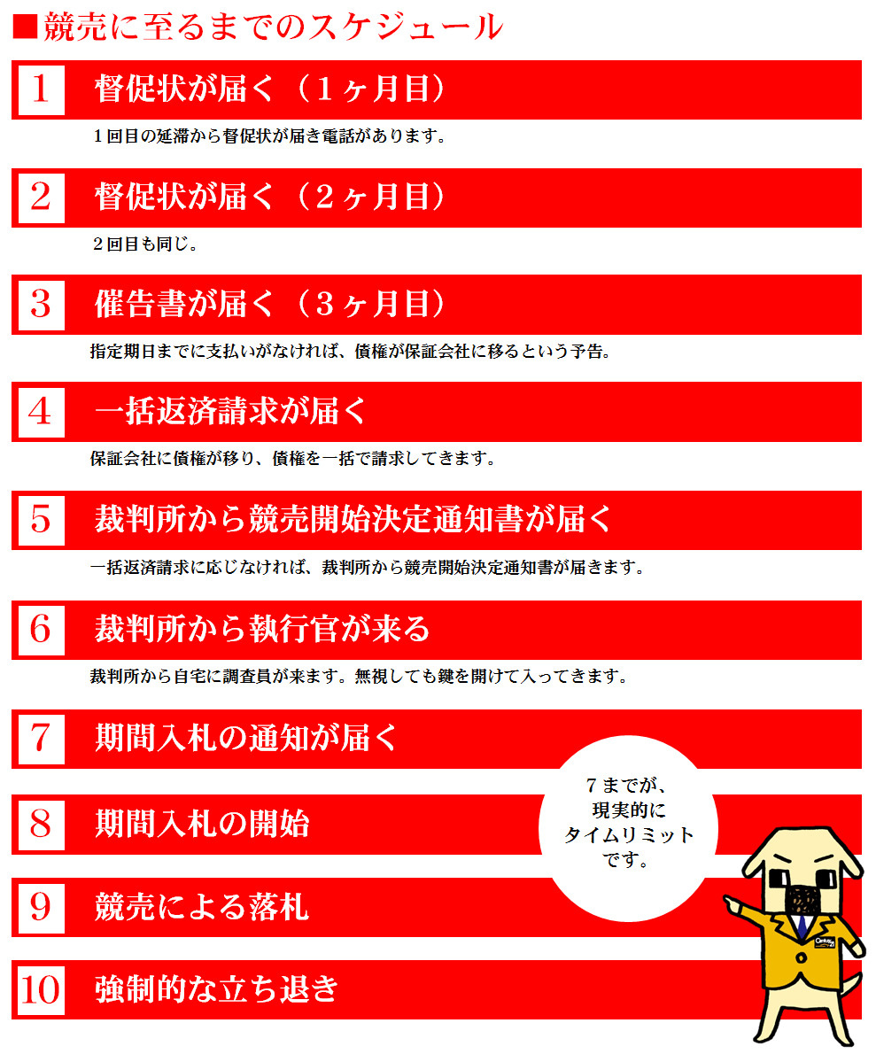 以上が、住宅ローン滞納から競売までの主な流れとなります。