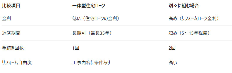 一体型ではなく、住宅ローンとリフォームローンを別々に組む方法もあります。