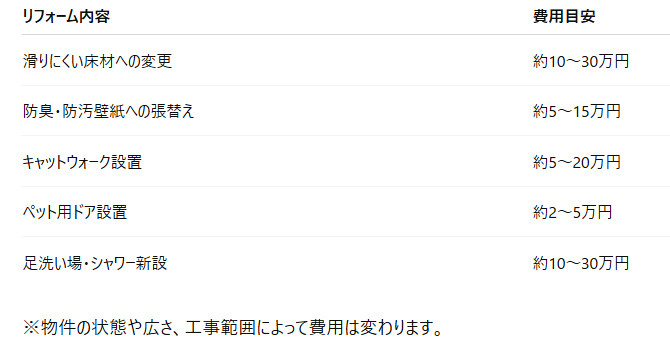 ペット可住宅リフォームの費用目安(大阪市)